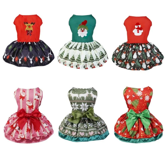 Christmas Dog Dresses New Year Dog Clothes Fancy Princess Puppy Dress Fashion Bow Cat Skirt Holiday Print Pet Costumes Dog Skirt