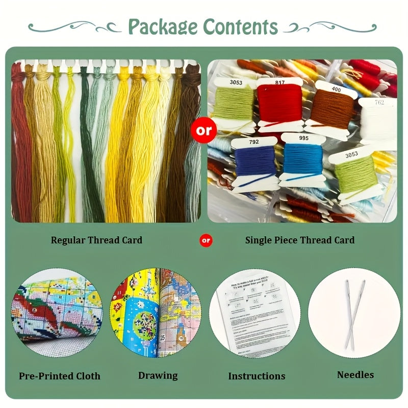 1 Set - Cute Snowman Theme Cross Stitch Painting Kit, DIY Art Needlework Supplies, High-Quality Embroidery Threads, Craft for Beginners and Experts. Full Home Decor Printed Embroideries Suitable as Wall Hangings in Entryway,