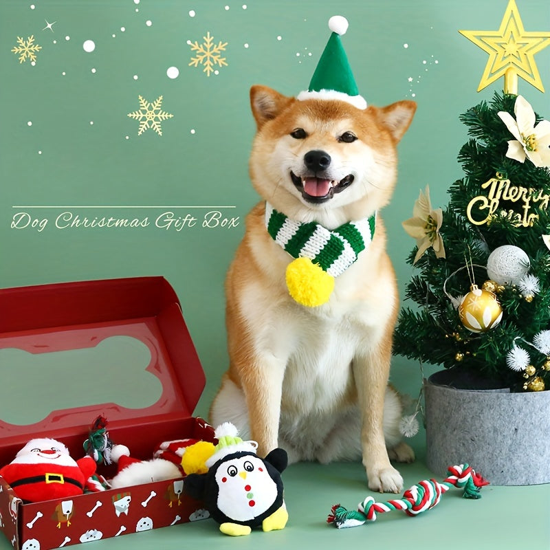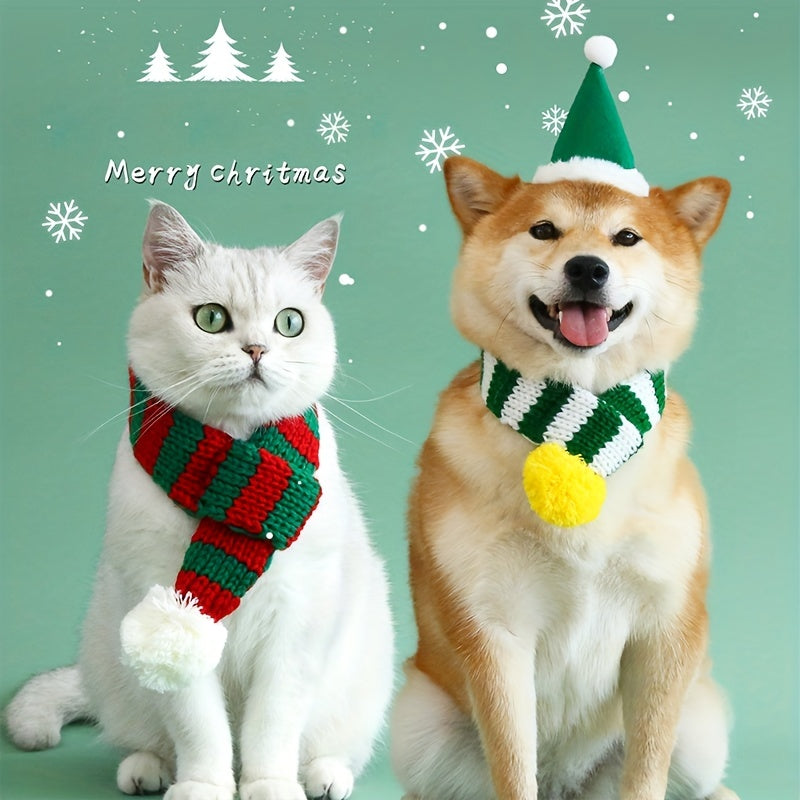 1pc Cozy Winter Knit Scarf Bib - Bandanas for Large Dogs - Striped Collar, Warm, Pet New Year and Christmas Accessories