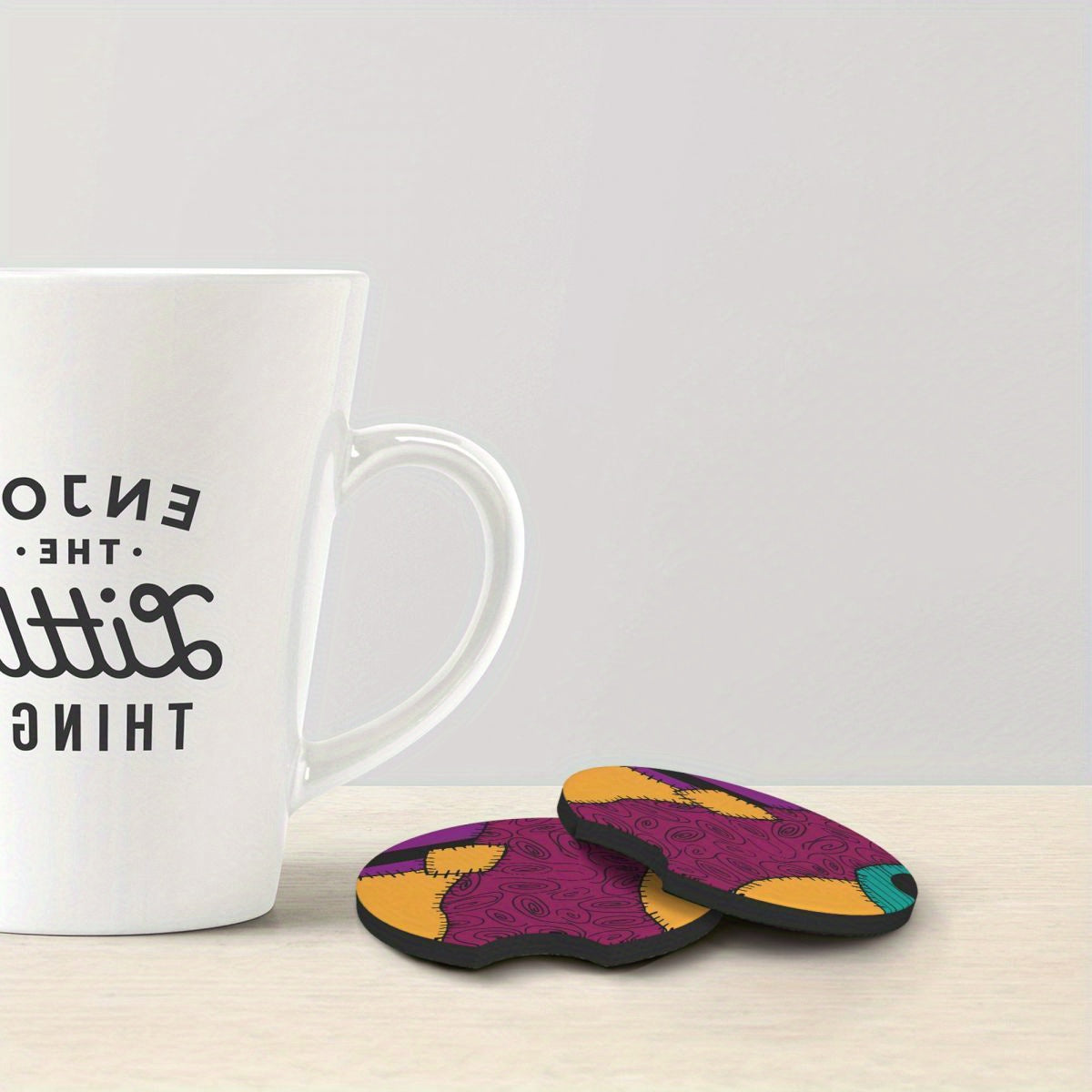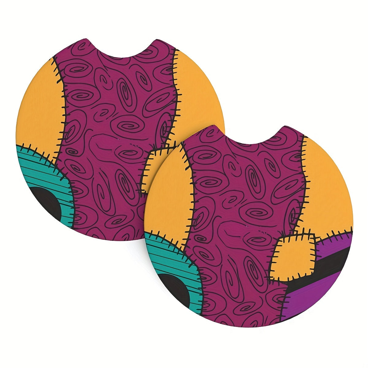 6-Piece Complete Car Decoration Kit - Soft Polyester Steering Wheel Cover, Center Console Pad, Cup Holder Coasters, and More - No Filler, Durable, and Easy to Clean Nightmare Before Christmas Accessories