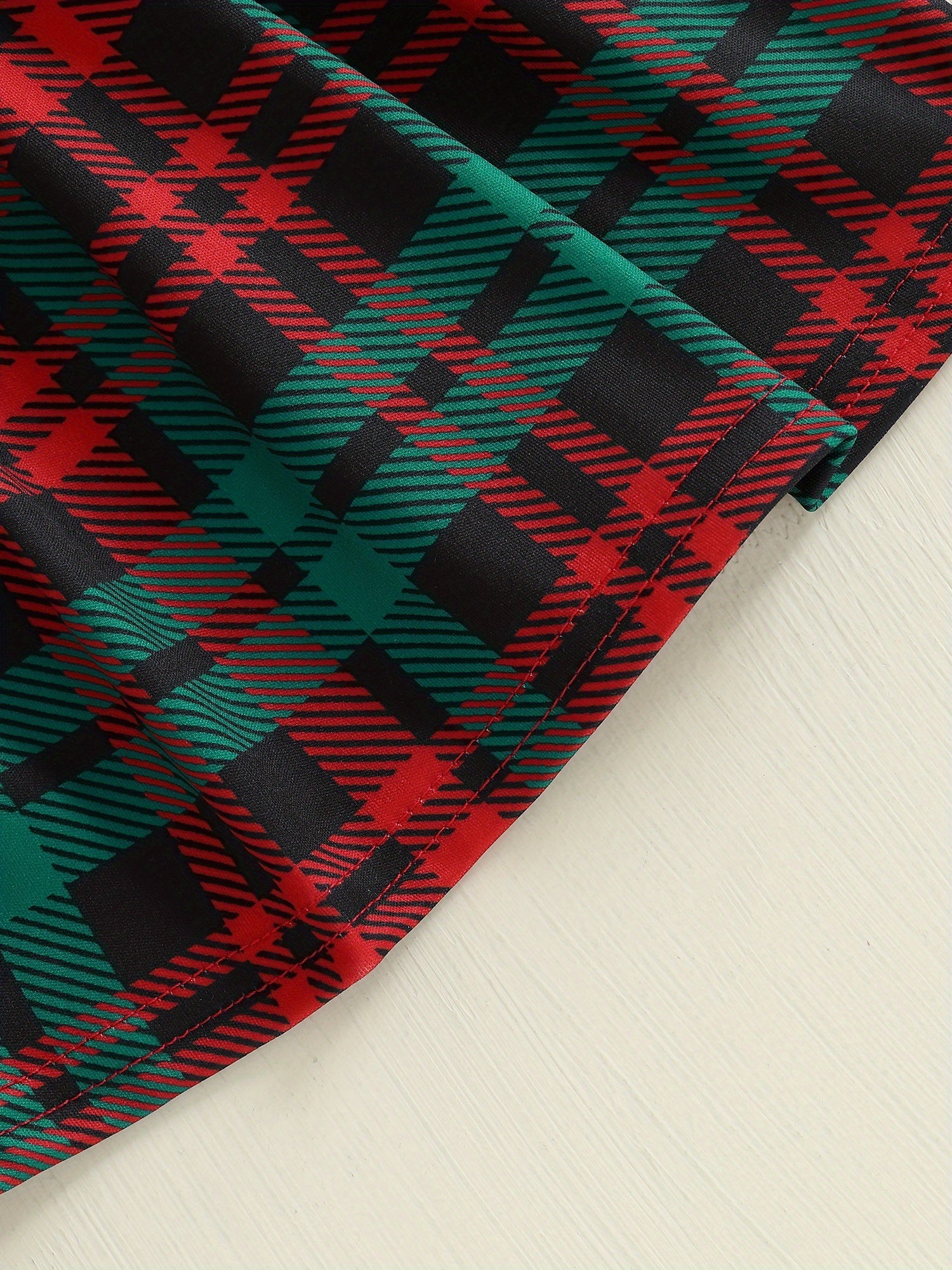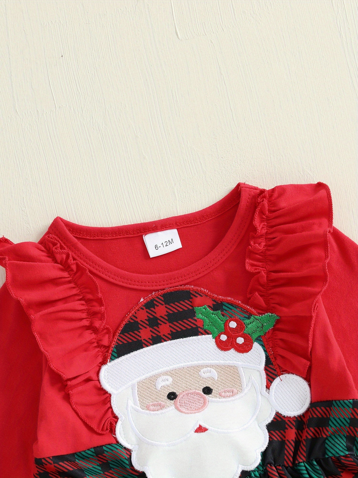 Baby Girl Christmas Dress with Santa Hat & Plaid Skirt - Long Sleeve A-Line Winter Outfit, Ruffle Trim, Knee-Length, Red & Green Checkered Design, Perfect for Fall & Winter, Baby Girl Christmas Clothes, Holiday Infant Wear, P