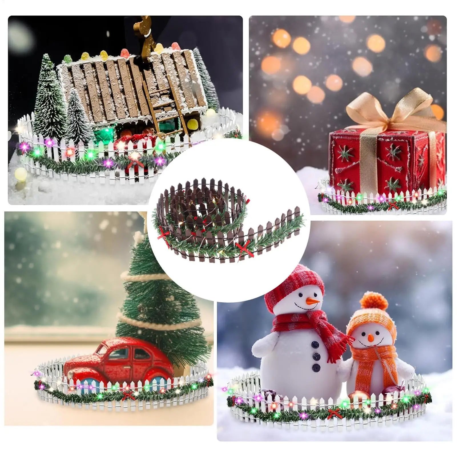 Christmas Tree Miniature Fence Handmade Rattan Wooden Village Barrier Fairy Garden Fences with LED Light Landscaping Props