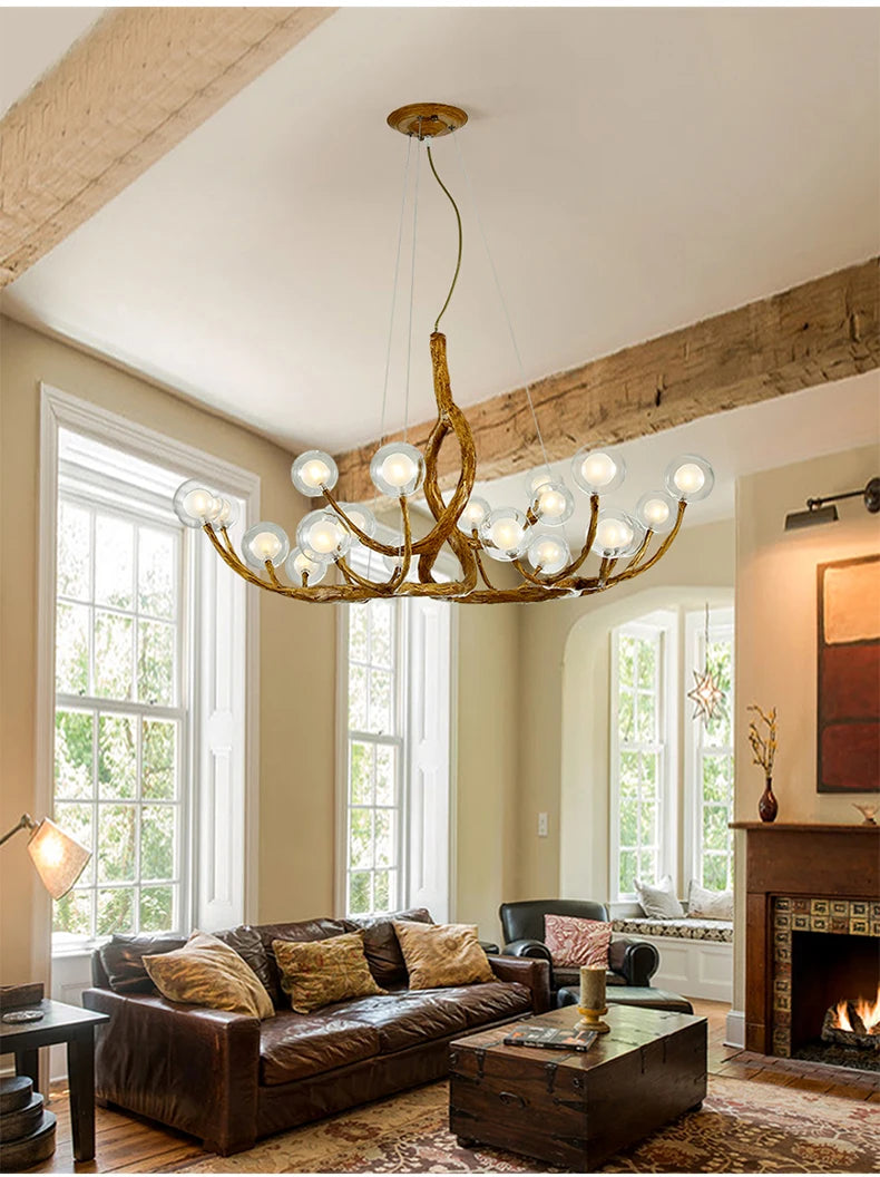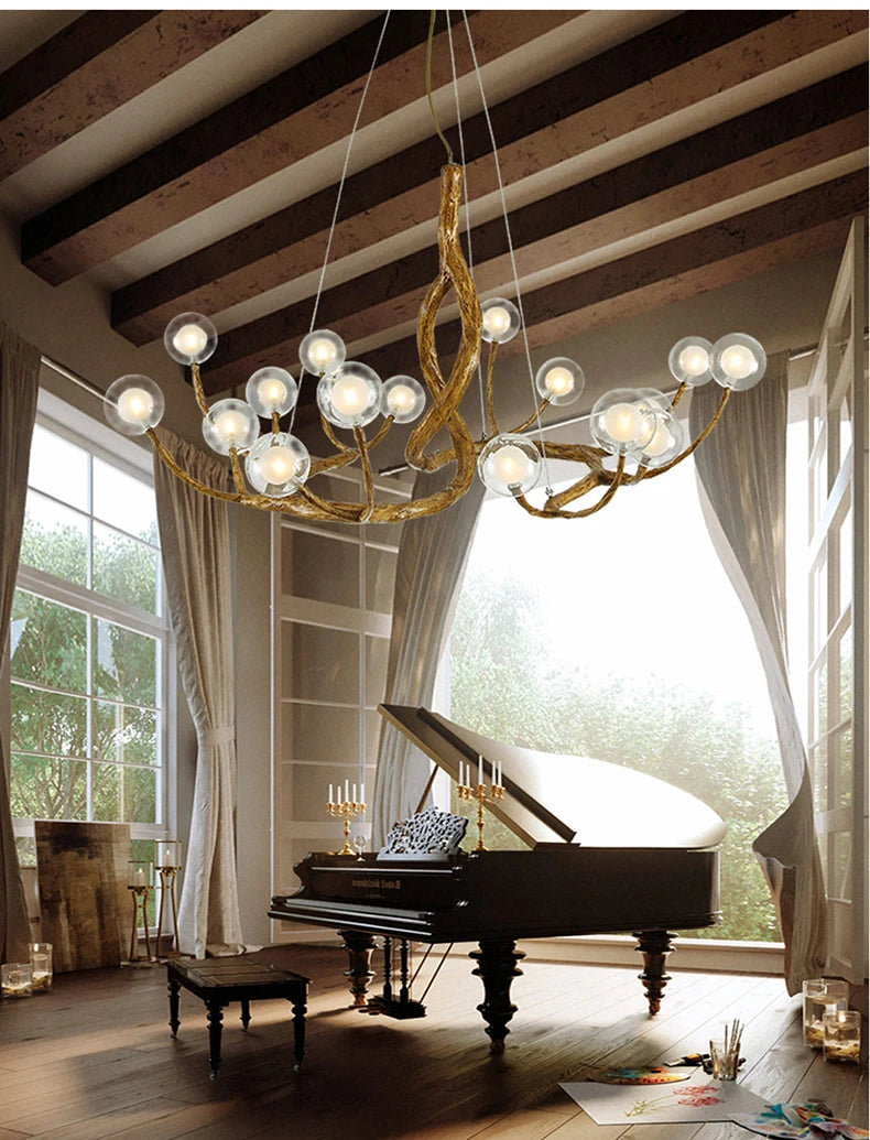 Tree Branch Chandelier Lustre Salon Design antique vintage lamp glass lampshade resin lamp for Living Room dining table light